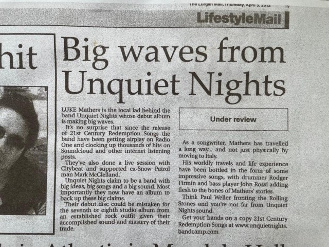 Luke Mathers is the local lad behind the band Unquiet Nights whose debut album is making big waves.