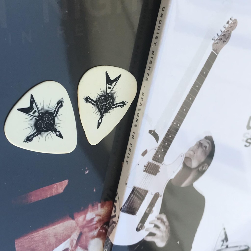 Tom Petty is one of my biggest influences. I started searching out his cassettes when I was about 6. I remember finding “Into The Great Wide Open” not long after it had come out in the Caroline Music in Portadown, and ended up getting all of his and The Heartbreaker’s albums. Eventually I got to see them front row in Italy in 2012, and met some of his people that day. Mike Campbell gave us his wristband, and burnt his mouth on our liquorice chewing gum during “Don’t Come Around Here No More”. I ended up getting guitar picks from Tom and Scott Thurston, which I used to record in particular the second Unquiet Nights album “Postcards In Real Time“. Even more Heartbreaker-ish about that album is that Tom’s drummer Steve Ferrone is on two tracks on it. I didn’t know that would happen at the time of the Lucca gig, although I was telling Steve’s drum tech Gary from Arizona that day that Steve was also in the band of a friend of mine, which is how he ended up playing on two of our tracks. Also at that gig Mike Campbell was super nice when I chucked him an Unquiet Nights badge which rolled away towards his amp. He tracked it down and thanked me for it anyway, who else would have done that? So yeah, massive Tom Petty & The Heartbreakers fan, and Tom’s departure is a tough one for me. My personal top ten of his songs below.