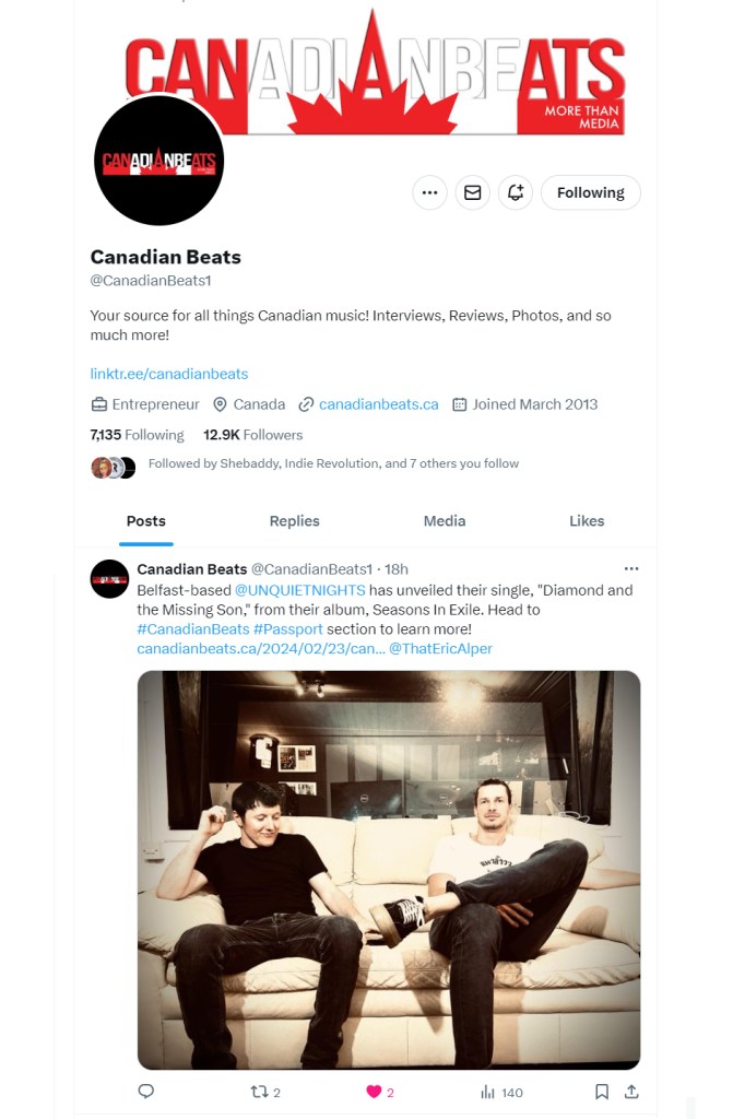 “…the album furthers the reputation for faith-restoring rock they’ve enjoyed with tastemakers and fans alike….” – @canadianbeats