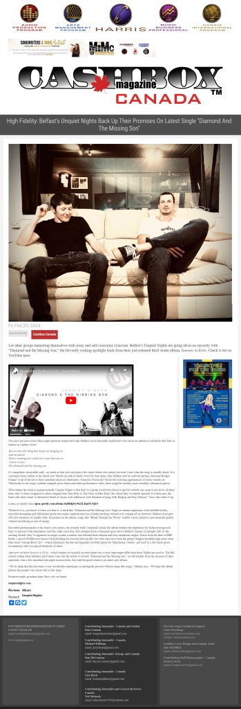 “…A track like “Diamond and the Missing Son” forges an instant impression with indelible hooks, muscular drumming and full-bodied guitar…..”