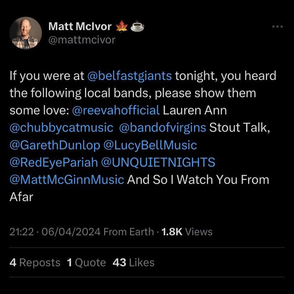 A very intense thank you to Matt McIvor, the resident DJ at the Belfast Giants in the SSE Arena, Belfast.