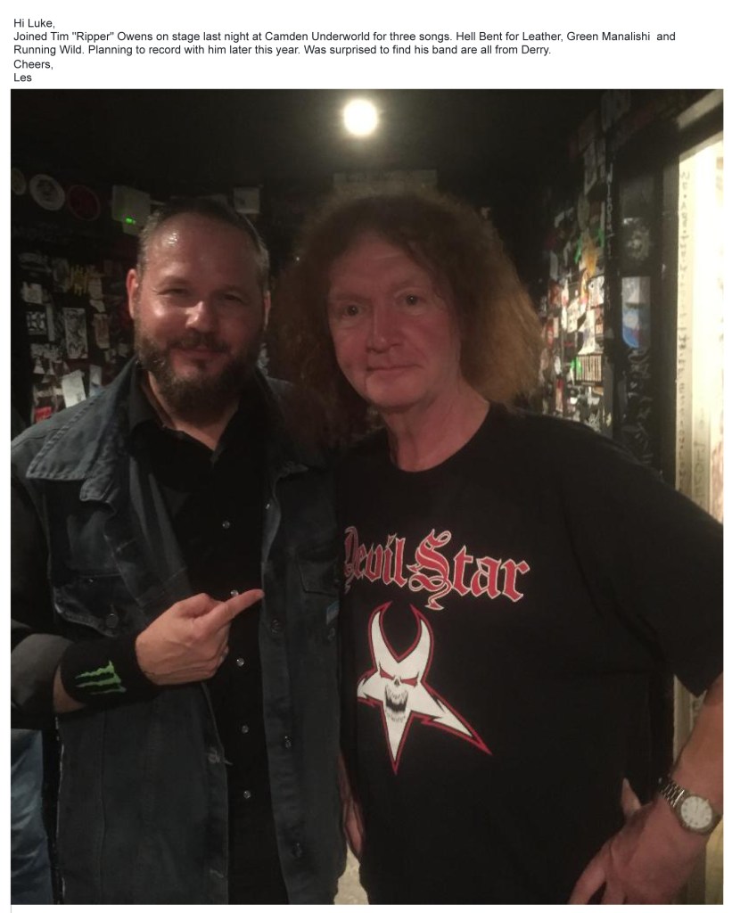Judas Priest drummer Les Binks was a long time supporter of ours. Apart from doing many great things in music, he was a very entertaining person to discuss the music business with. He last e-mailed me in April 2024 to wish us good luck with our “Seasons In Exile” album. We had a back and forth that was very interesting to me about what is and isn’t Rock. Les assured me that there are many types of Rock and that Unquiet Nights are “certainly one of them”, which is what I had asked him in the first place. Glad to see he was honoured with the Rock & Roll Hall of Fame in 2022. Above is Les watching our “George Best City” video.
