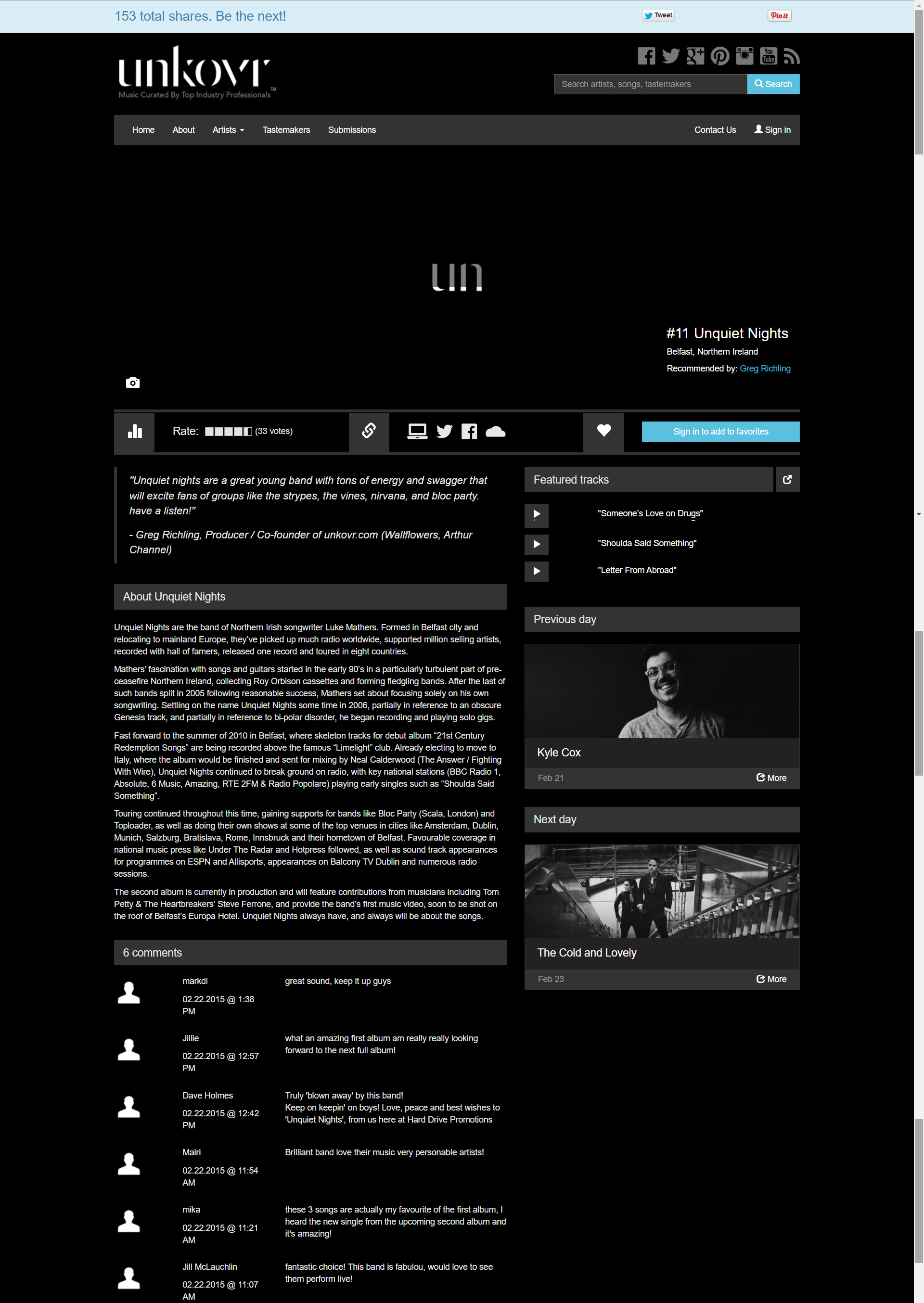 “…From their humble beginnings above Belfast’s Limelight club to international acclaim, Unquiet Nights have remained true to their roots while pushing musical boundaries…”