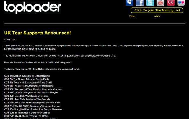 Concert listing – ToploaderOfficial.com